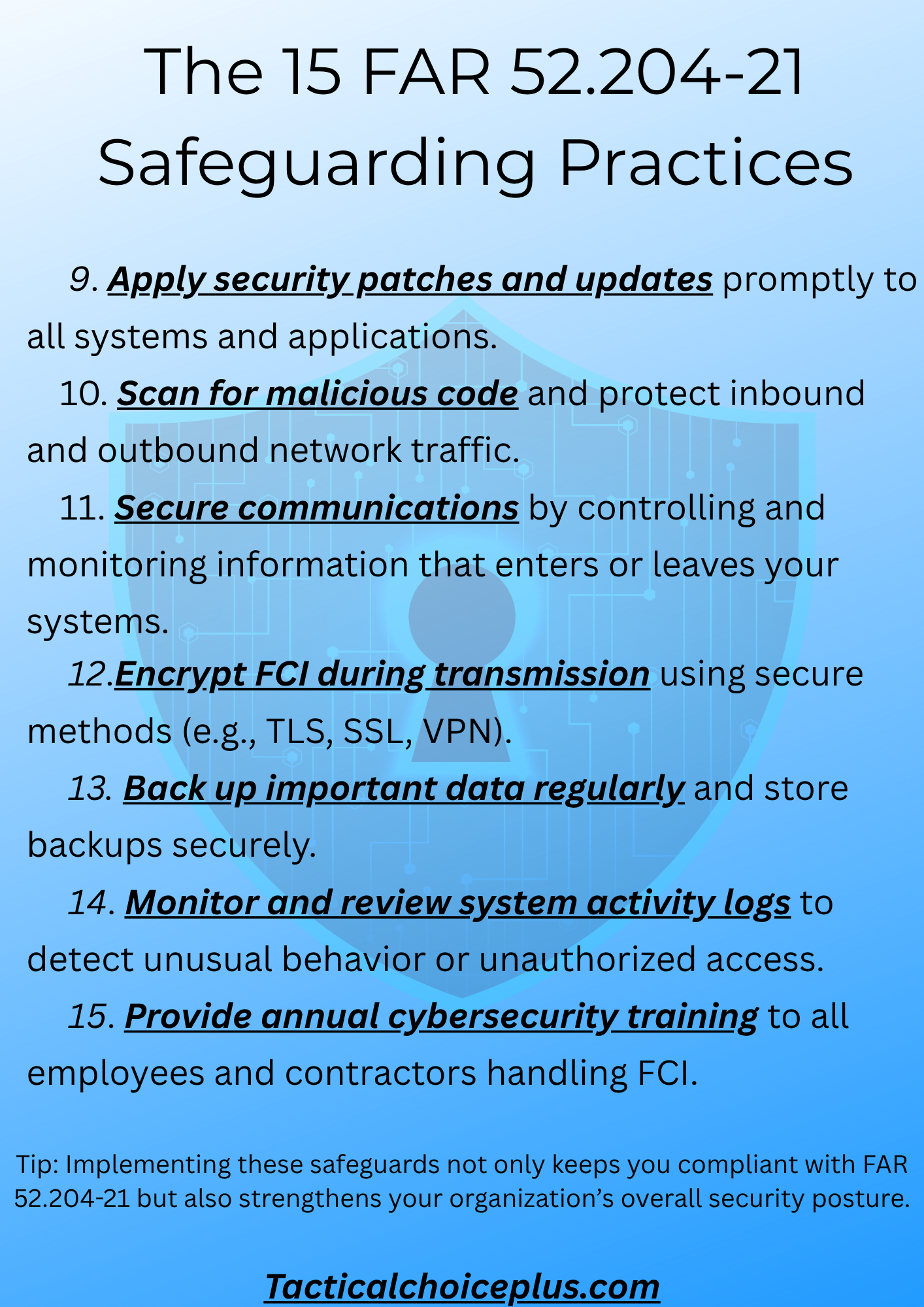 Full list of the 15 FAR 52.204-21 safeguarding practices