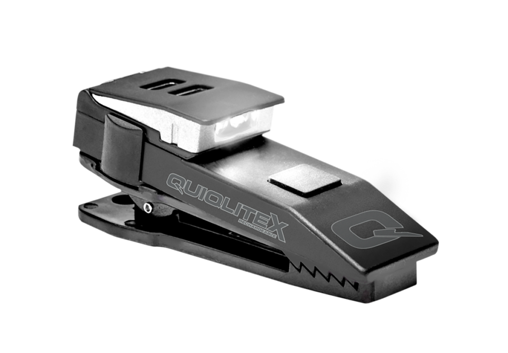 QuiqLiteX High Power Dual White LED is USB rechargeable and provides from 5 up to 200 Lumens of light on demand. The Dual White LED configuration is designed for normal reading, writing and maneuvering in the dark without having to hold a flashlight in your hands. QuiqLiteX Dual White LED allows for single or dual LED activation for situations when extra light is required. The first push of the On/Off button will activate a single white LED at 20 Lumens to help preserve your night vision. If more light is required, simply push the X-BOOST button to increase up to 100 Lumens per LED (200 Lumens). The QuiqLiteX is equipped with a 10 minute auto-off battery saving timer and continuous Safety Strobe mode, plus QuiqFlare which provides visibility from over 1 mile away. Now includes a new Pupil Gauge located on the back of the QuiqLiteX.