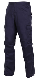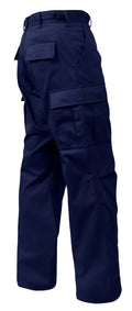 - The adjustable waist tabs enable you to find the perfect fit without the need of a separate belt! These tactical cargo pants also feature drawstring ties that allow you to blouse over your boots for a clean and professional look. (Midnight Navy Blue BDUs don’t have the drawstring ties). This style of our BDU pants include 7 belt loops, a zipper fly, and are designed with a relaxed fit.