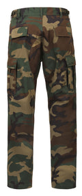 - These zipper fly BDU pants offer practical effectiveness with 2 front slash pockets, 2 large button-down cargo pockets, and 2 button-down back pockets. The utility pockets are great for holding everyday essentials like your phone, wallet, keys, or multi-tool.