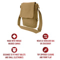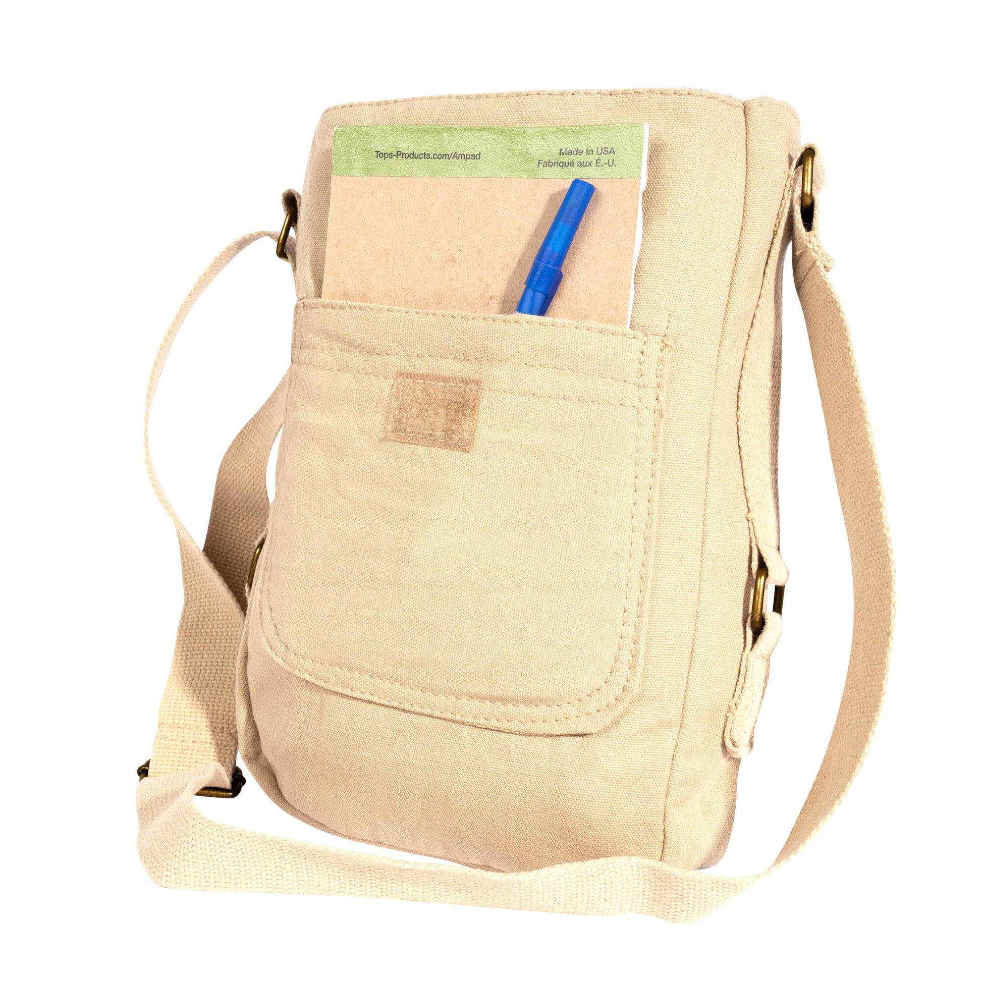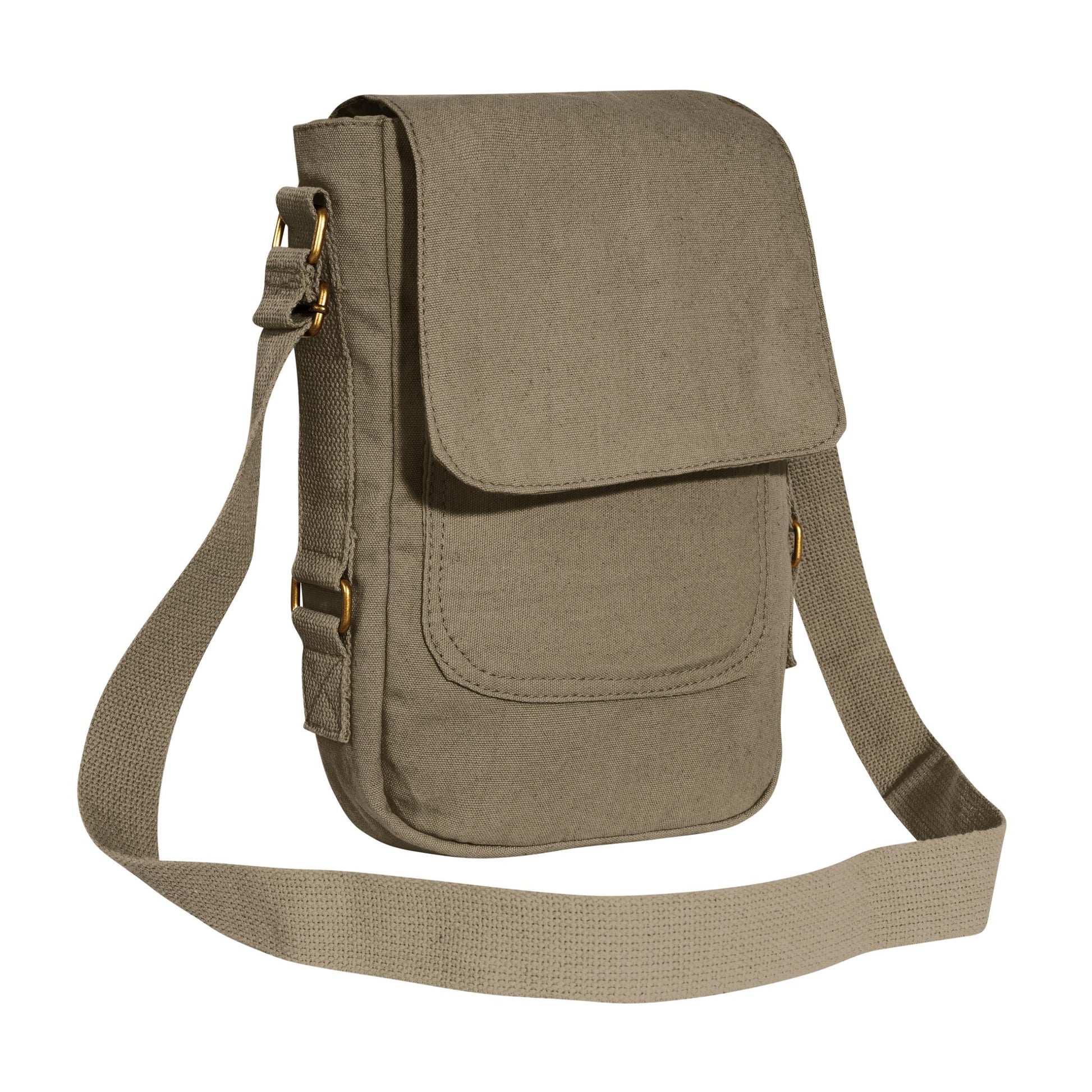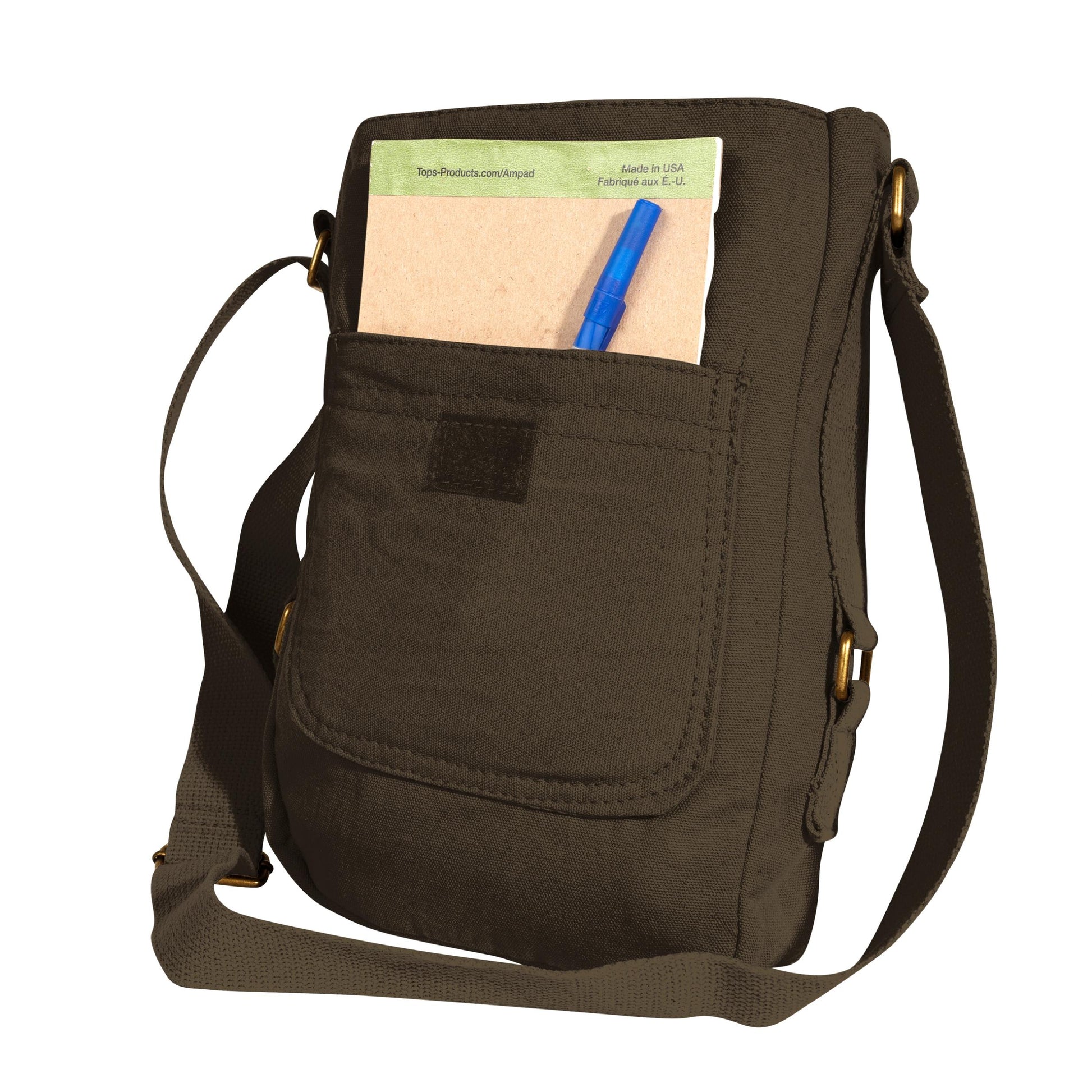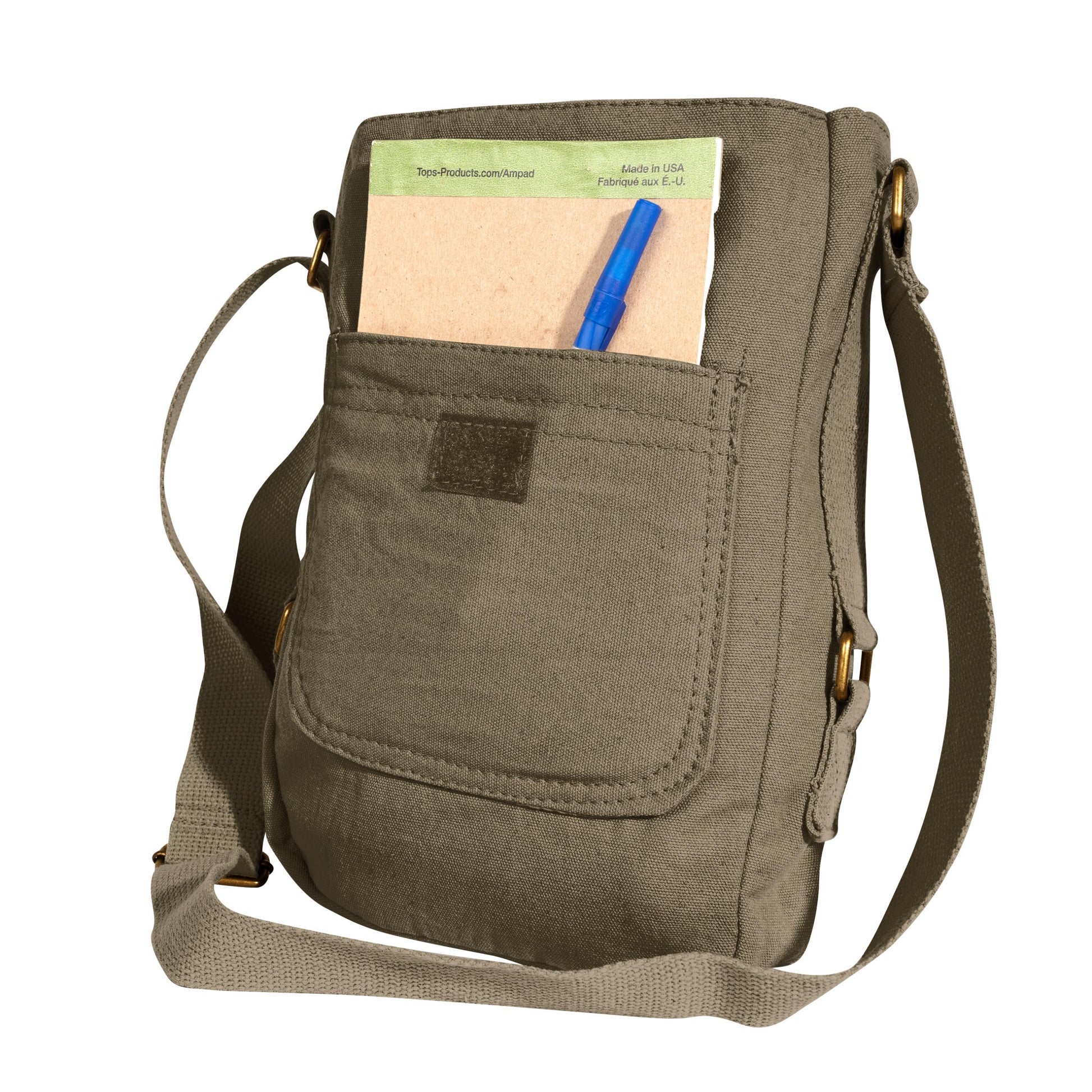 Tactical Choice Plus's Vintage Canvas Military Tech Bag is the perfect bag for your tablet and other tech gear. The shoulder bag is made with a vintage washed canvas and has a padded interior that makes it ideal for carrying electronics with you all day long. This canvas tech bag features a 1 1/2" wide adjustable shoulder strap for comfortable wear. A front pocket, as well as an interior zippered pouch, helps keep small gear organized while the top zippered closure and front flap keeps your larger gear safe and secure.