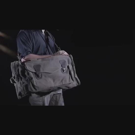Our weekender bag is constructed from durable cotton canvas, leather accents, and antique brass hardware for a vintage look with a polyvinyl inner bottom that helps protect the contents of the bag. The shoulder bag also includes 2 reinforced side carry handles, an adjustable shoulder strap and leather zipper pulls.