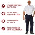 The EMT Pants offer an excellent value and are an extremely durable pant. The EMT pants are constructed with a rugged poly/cotton twill material that is pre-hemmed and ready to wear in short, regular & long lengths. The pants feature nine pockets, including slot pockets for scissors, flashlights, and other emergency services equipment, large back pockets, large front pockets, and a small bellows pocket.