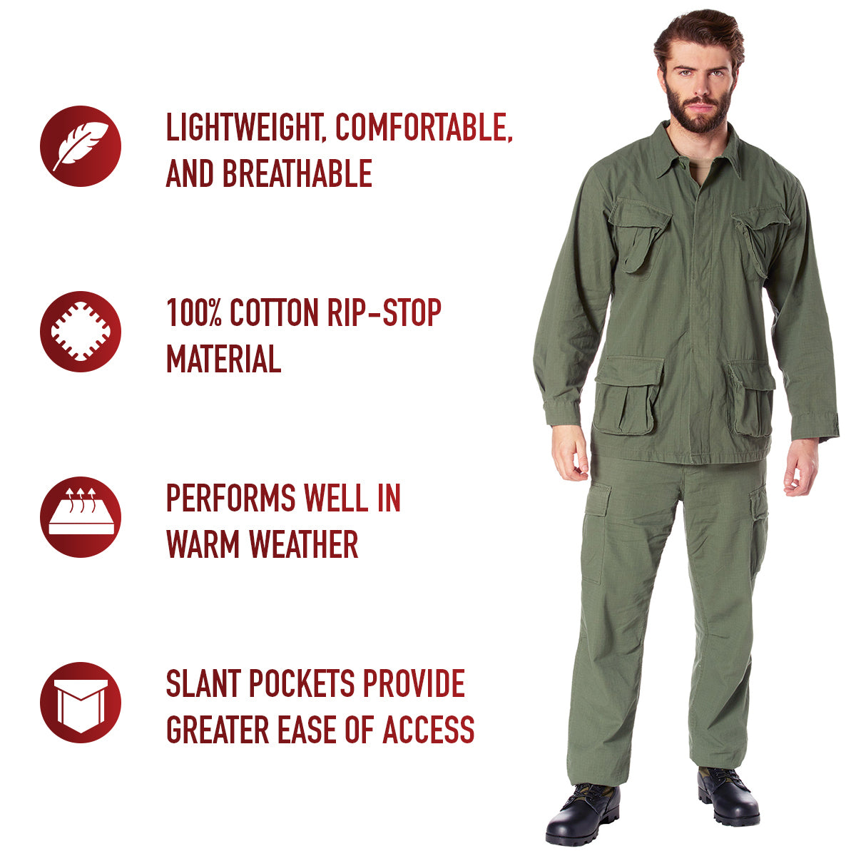 - Complete your uniform with a matching pair of our Vintage Vietnam Fatigue Pants and Vintage Vietnam Boonie Hat, all of which feature 100% cotton rip-stop fabric.