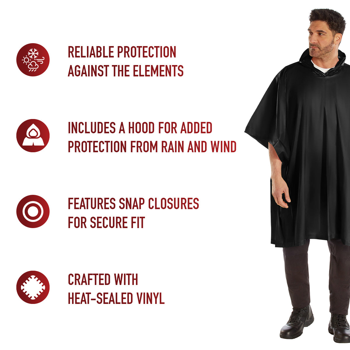 Tactical Choice Plus's heat sealed vinyl ponchos provide great protection from wet weather and are easy to store. These rain ponchos feature snap closures for secure fit and a carrying pouch for easy carry and storage. Rothco's rain ponchos come in different colors to fit your style needs.