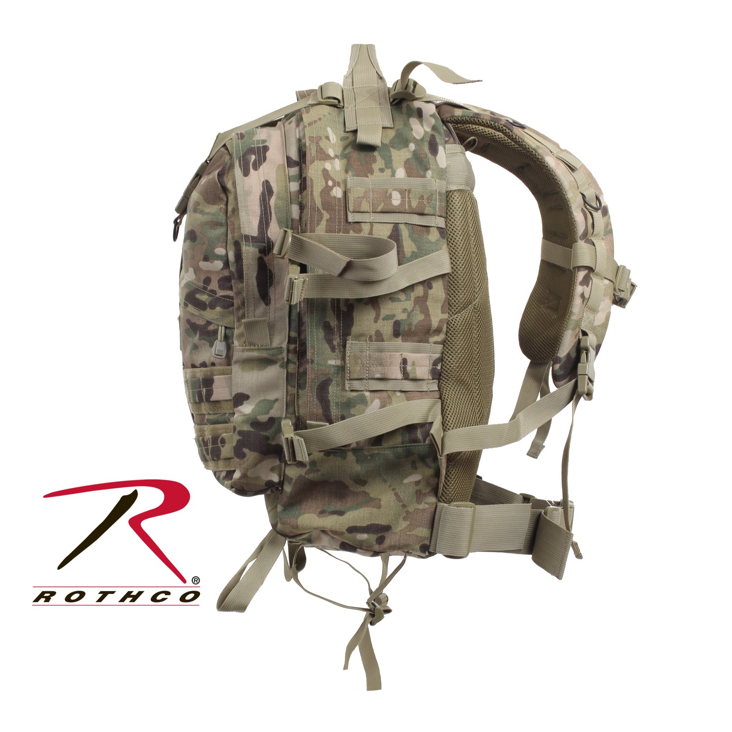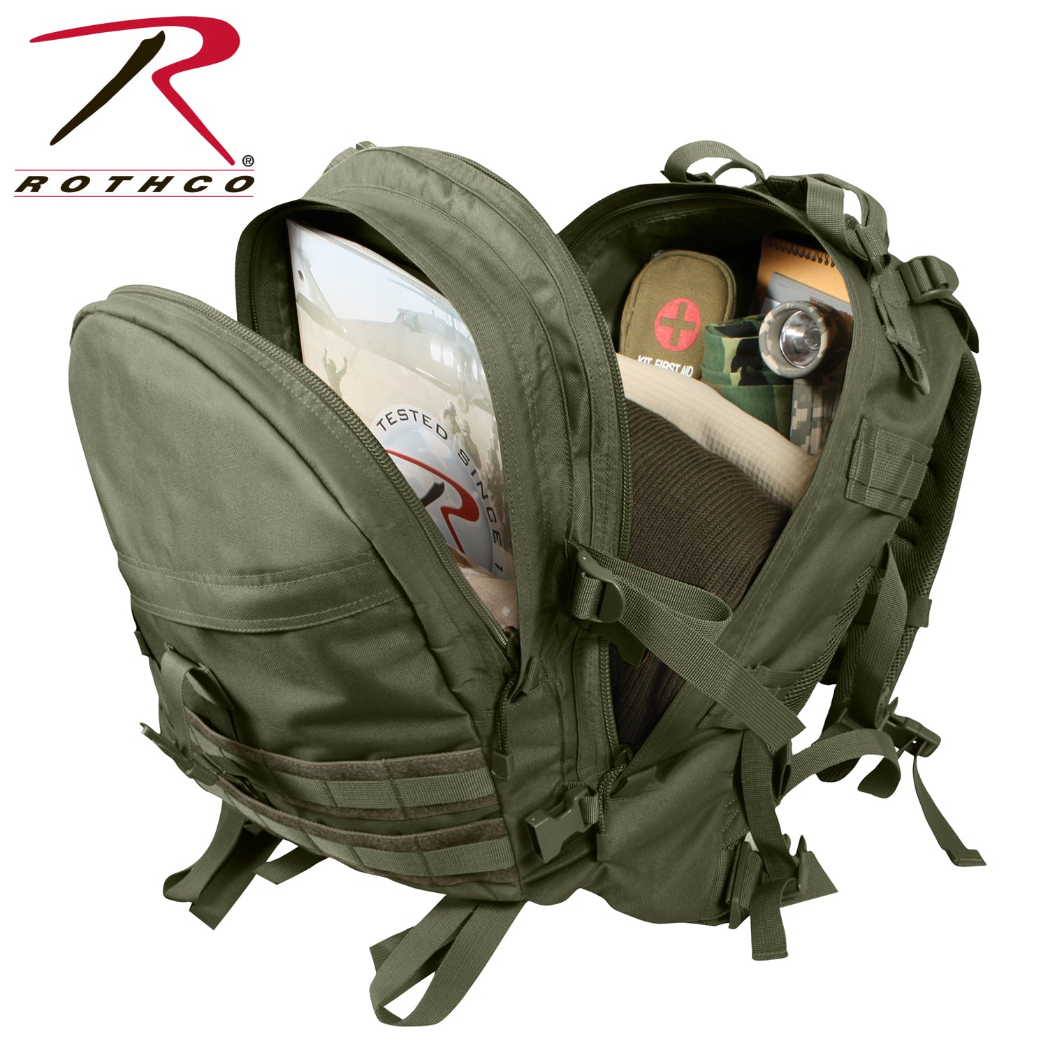 Designed to fit all your military and tactical needs, Rothco’s Large transport pack features extensive storage options and is made with a heavyweight polyester material, the interior has also be treated with a water repellant coating. The tactical pack measures approximately 19" X 15" X 8" and features two large compartments, plus a zippered front compartment that is ideal for organizing your gear or loading out a Bug Out Bag. Given the extensive storage options, the tactical pack has been designed to ensure comfort for long hauls. Rothco’s tactical back pack features adjustable padded shoulder straps with D-rings, a padded mesh back and adjustable and a removable waist belt which aides in weight distribution and pack stabilization. In addition, the military pack features a top and side adjustable web straps and a top carry handle. Rothco’s Large Transport Pack is also MOLLE and hydration compatible.