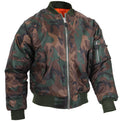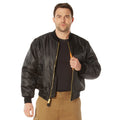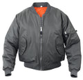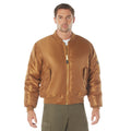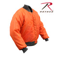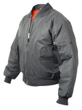 Tactical Choice Plus's MA-1 Flight Jacket features a fully reversible rescue orange polyester lining, and a 100% nylon water repellent outer shell to give a classic bomber jacket look. A poly fiberfill lining and zippered front closure and storm flap help keep you warm. The MA-1 Jacket has an extra full cut and ribbed knit collar, cuffs, and waistband for a perfect, comfortable fit. A zippered utility pocket and outside pencil pocket on the left sleeve, two front slash pockets, and two interior slash pockets offer many storage options for essential gear. Brass zippers and leather pull tabs add to this classic military style jacket.