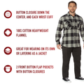 Our Buffalo Plaid Flannel Shirts provide a layer of unbeatable warmth and comfort, no matter the location. These rugged button-down shirts are great for either wearing on its own or layering as a jacket. They’re made from 8-ounce heavyweight cotton fabric, and are perfect for a casual night out or a brisk stroll through the woods, park, or trail.