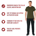 Tactical Choice Plus presents the Solid Color Short Sleeve Crew Neck T-Shirt. These military t-shirts are designed with comfort in mind, along with a casual, yet professional appearance. These lightweight t-shirts can be worn on their own, or under your uniform as a base layer undershirt. These breathable shirts are great for outdoor adventures, working-out, casual everyday use, professional workwear, and more!