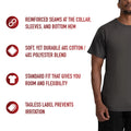 - These crewneck tees consist of reinforced seams at the collar, sleeves, and bottom hem to further enhance the shirt’s durability. With a tag-less neck label, you’re free to move around without any itches or scratches.