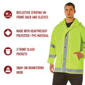 Stay dry, visible, and protected with this durable rain jacket designed for safety and functionality.