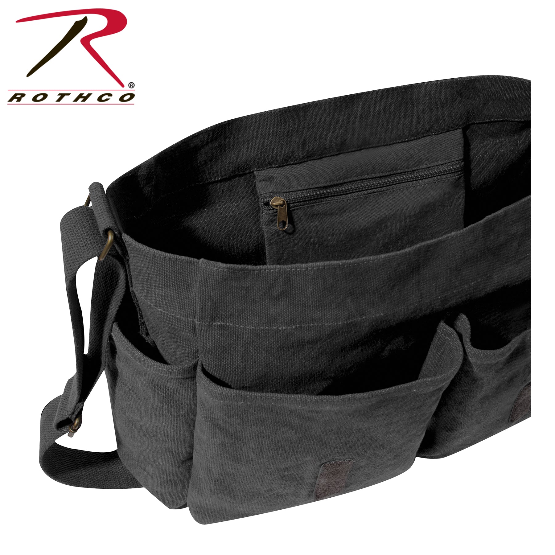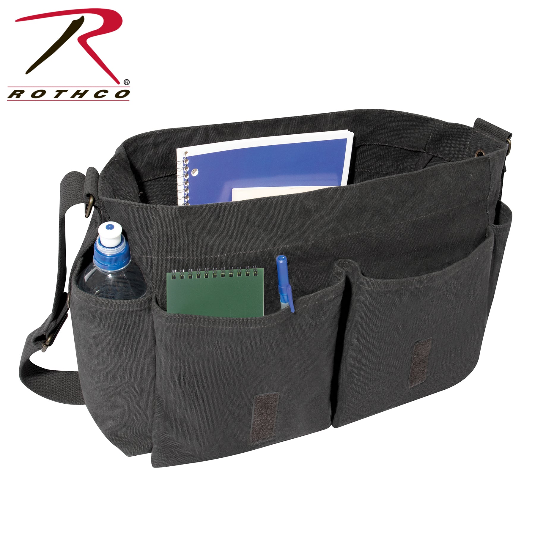- Stay worry-free about the contents inside your Classic Canvas Messenger Bag as they’ll remain safe and secure within the large hook and loop flap closure. In addition, the flap closure features two canvas loops, allowing you to attach other gear while you travel.