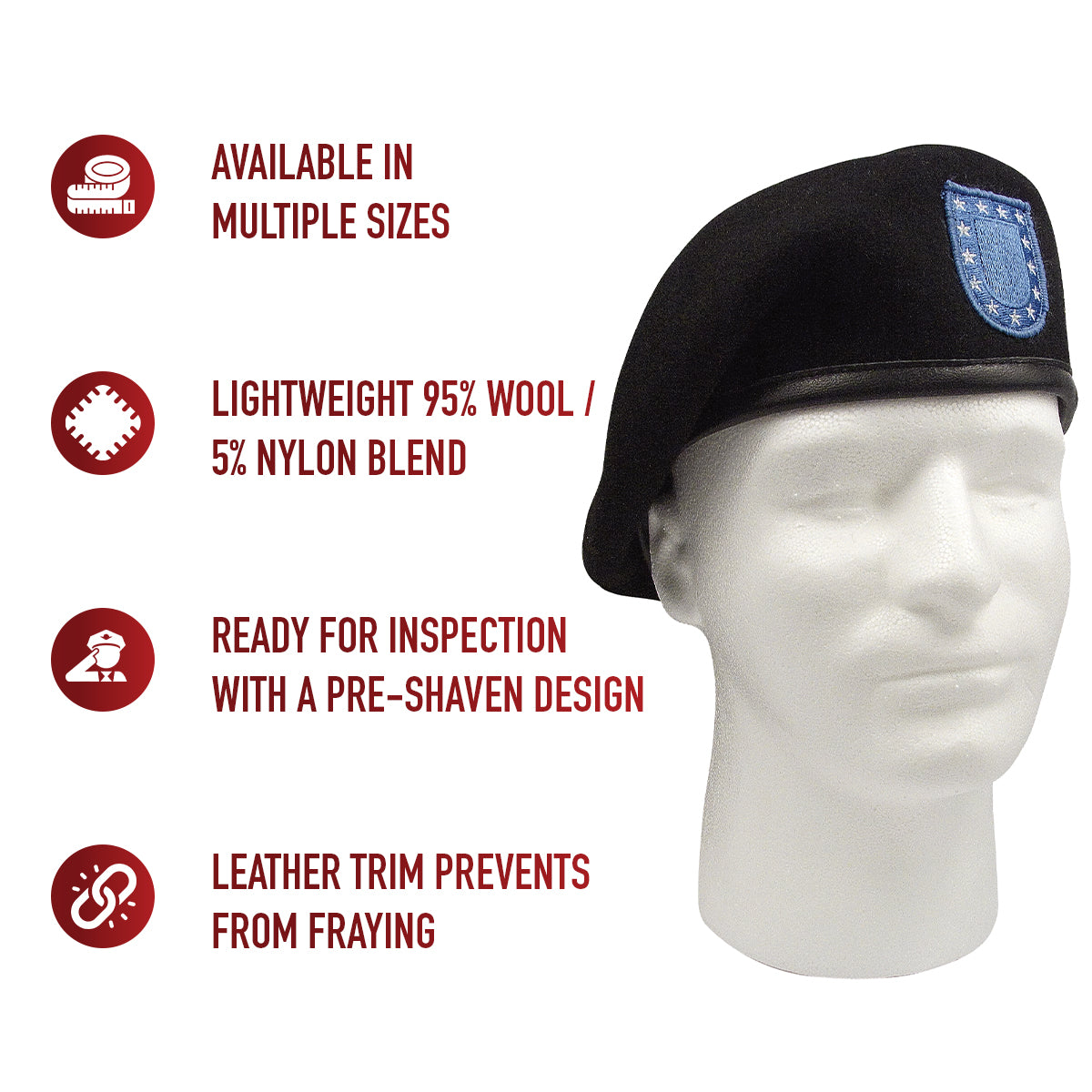 - Constructed with a durable and lightweight 95% wool / 5% nylon blend, these military berets provide additional warmth and insulation while shielding you from the wind and light rain.