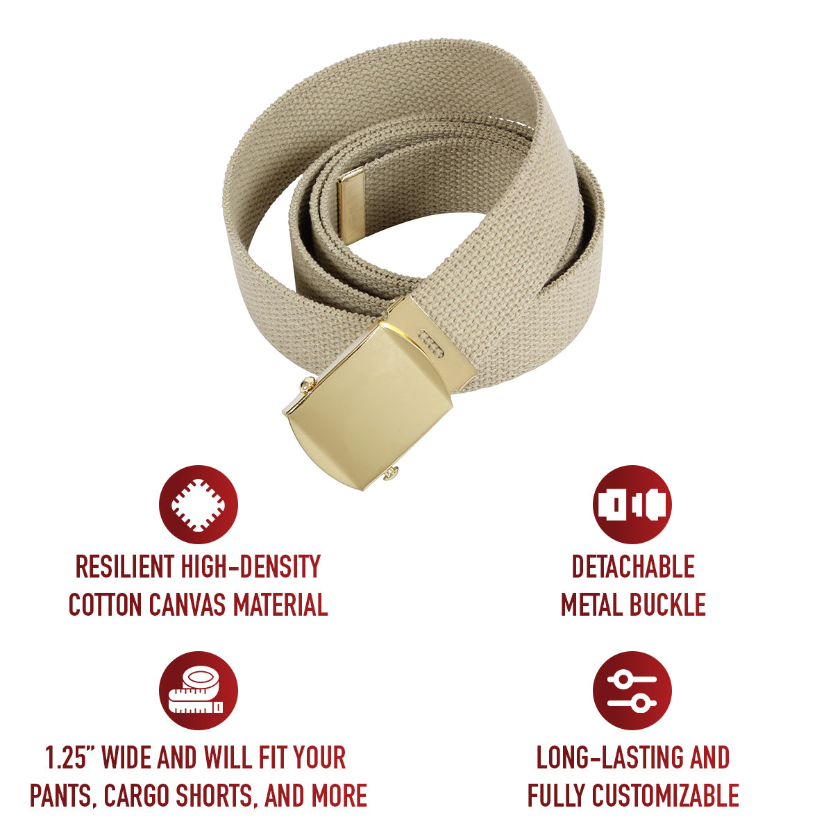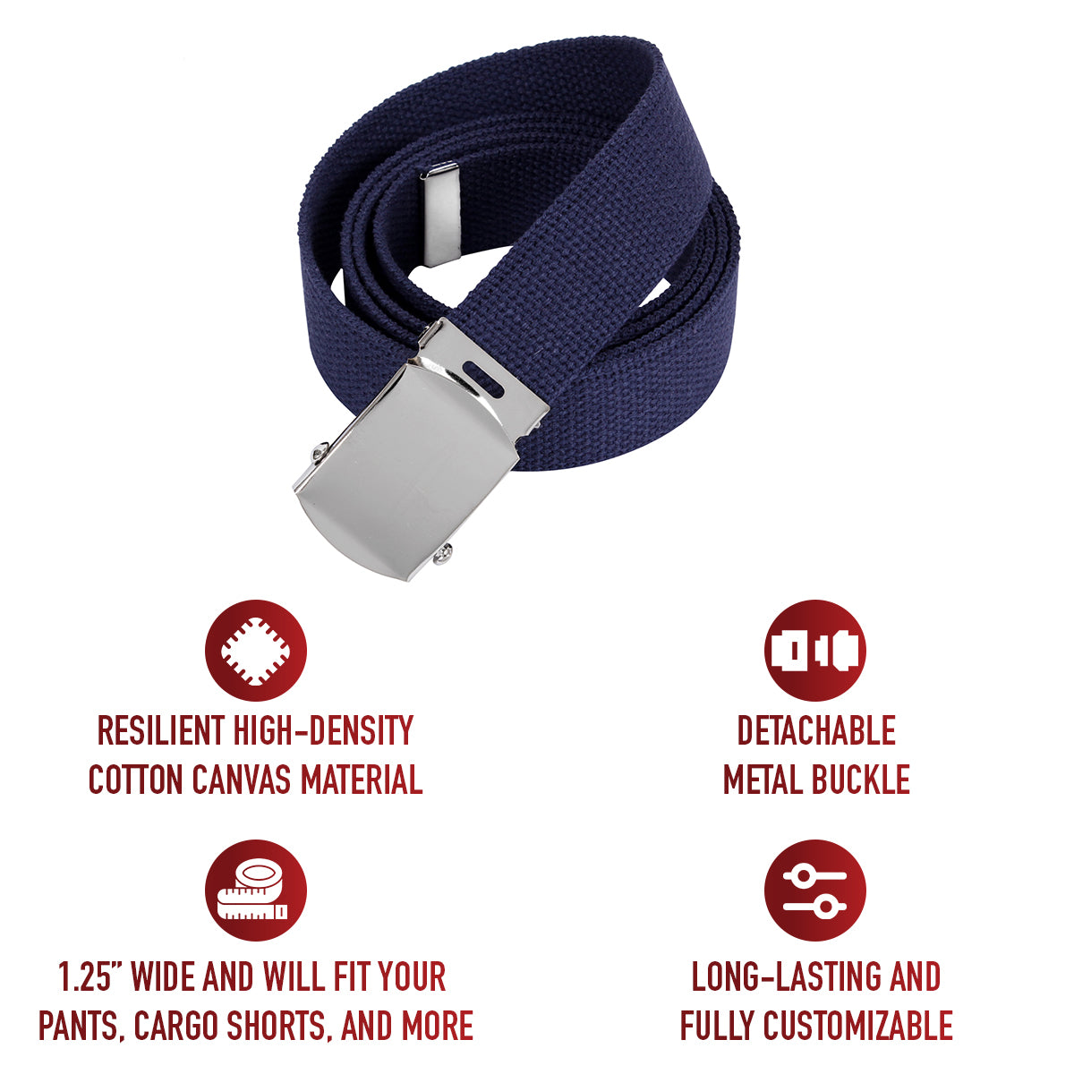 Long-lasting and fully customizable, Tactical Choice Plus's Military Web Belts can easily be cut for the perfect fit (up to 44 inches long). The military-grade cotton canvas material is available in over a dozen belt and buckle options. The secure metal buckle keeps the belt in place and can also be removed. Measuring 1.25” wide, the cotton belt will fit your BDU Pants, Cargo Shorts, Uniform Pants, Jeans, and more.