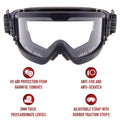 Rothco’s OTG Ballistic Goggles will ensure optimal eye protection with 2mm thick polycarbonate lenses that meet ANSI-Z87-1 and military standards for impact protection (MIL-DTL-43511D). The tactical goggles are designed to comfortably fit a pair of glasses underneath with a 7/8” cut out on each side for the temples of the glasses. In addition to ballistic protection, the lenses of the safety goggles are anti-fog, anti-scratch and offer UV 400 protection. Rothco’s OTG Goggles feature top and bottom vents for breathability, 3/8” interior foam padding for long lasting comfort, and an adjustable strap with a rubber grip for a perfect and secure fit as well. The shooting goggles will make a great addition to your military and tactical gear collection.