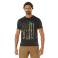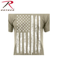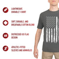 Showcase your patriotism with Tactical Choice Plus's Distressed US Flag Athletic Fit T-Shirt. This lightweight patriotic t-shirt features a large vertical distressed flag on the center of the chest and a smaller American flag on the right sleeve. The flag on the right sleeve is oriented with the stars facing forward to emulate a flag flying in the breeze as the wearer moves forward, just like on a real military uniform. This flag shirt is ideal for athletes thanks to its specialized fit featuring an inset collar, broad chest, and athletic-fitted sleeves and armholes. The USA flag shirt is made from a soft, breathable, and dependable cotton/poly blend that will last you countless workouts. Plus, this American flag shirt is entirely free from itchy, bothersome tags.