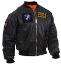 - Similar to the original design for Fighter Pilots, our dependable MA-1 Flight Bomber Jackets feature a reversible orange polyester lining that also offers you alternative fashion options. The zippered front closure with double ‘MA-1’ Pull tabs and storm flap, brass zippers, and leather pull tab pays homage to the jacket’s heritage, functionality, and style.
