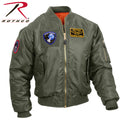 - This model of our MA-1 Jackets includes four custom loop fields that vary in size, but will accommodate most morale and flag patches. These loop fields allow you to personalize your jacket with hook patches of your choice. It also comes with five morale patches with hook backs: ’53 Wing Patch, Flight Crew Patch, Space Explorer Patch, Fighter Pilot Patch, and US Flag Patch. Loop Field Sizes: Right Sleeve = 4 ¾” x 4 ¾” / Right Chest = 4 ¾” x 4 ¾ / Left Chest = 2 ½” x 3 7/8” / Above Pocket on Left Sleeve = 1 7/8” x 3 ½”