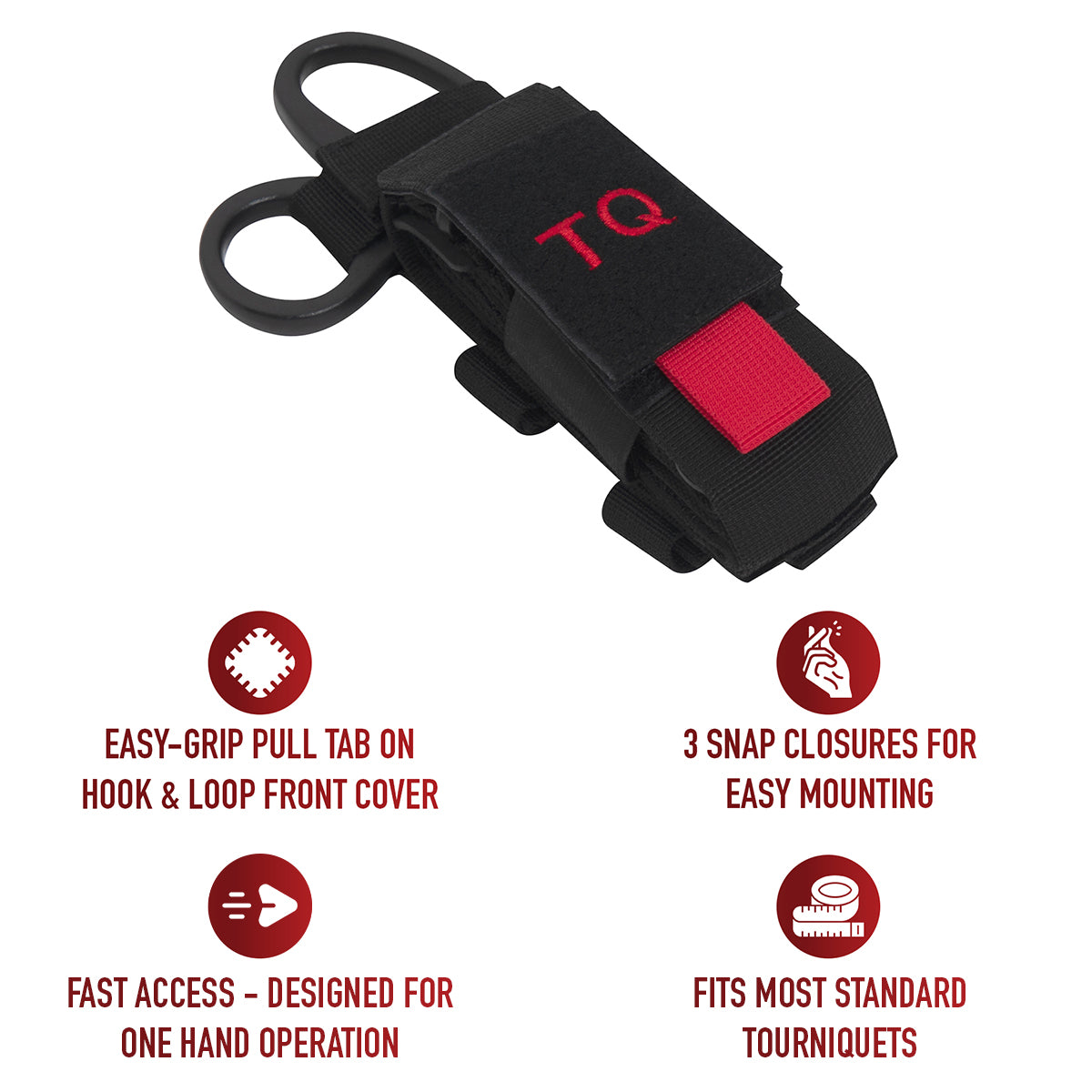 Tactical Choice Plus's Tactical “TQ” Pouch is designed to hold your tourniquet and shears with an elastic hook & loop compartment and a hidden back pocket with a horizontal hook and loop strap that feeds through the handle of your shears. The tactical tourniquet and shear holder pouch (6 ¾” X 2” X 1”) features a versatile design with back MOLLE (Modular Lightweight Load-Carrying Equipment) straps that allow you to attach the tourniquet pouch vertically or horizontally to your battle belt, military vest, and various other tactical gear items. The tactical pouch’s main hook and loop compartment provides quick and easy access to your tourniquet and includes elastic side straps so you can hold different size tourniquets. The hidden back pocket and horizontal hook and loop strap allow you to securely hold your shears in place by feeding the strap through the handle.