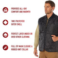 The quintessential comfort of the poncho liner transformed into a distinctive, everyday vest.