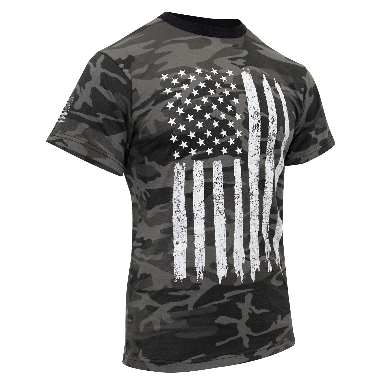 Tactical Choice Plus's Camo US Flag T-Shirt is as American as it gets; show off your patriotic spirit! Distressed USA flags are prominently displayed on both the chest and sleeve of this camo t-shirt. This USA flag t-shirt is constructed with a comfortable and reliable cotton blend that will last you for years and features a tag less label for added comfort. This American flag t-shirt is perfect for exercise, airsoft, casual wear, and much more.