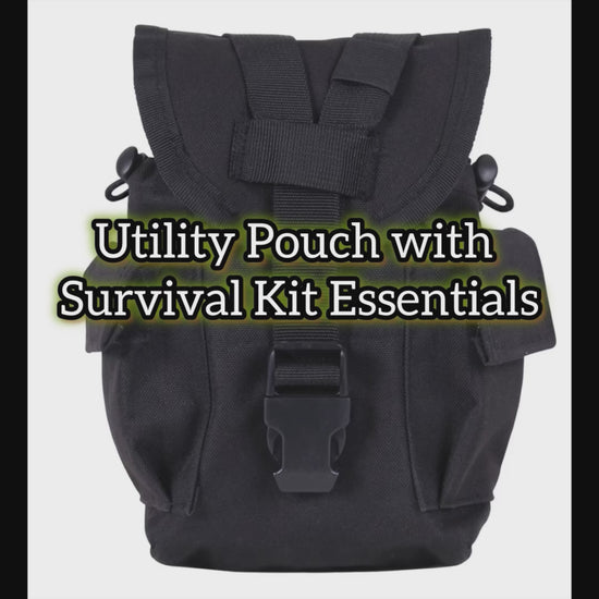 Utility Pouch with Survival Kit Essentials is perfect for the great outdoors with over 10 survival items for emergency situations. MOLLE Pouch Features a Quick Release Buckle for Easy Access to Its Contents in the Field. Dual MOLLE Straps on the Tactical Pouch for Attaching to Vests, Belts, Packs, And More. Perfect For Active-Duty Personnel, MilSim Players, Public Safety, And More.