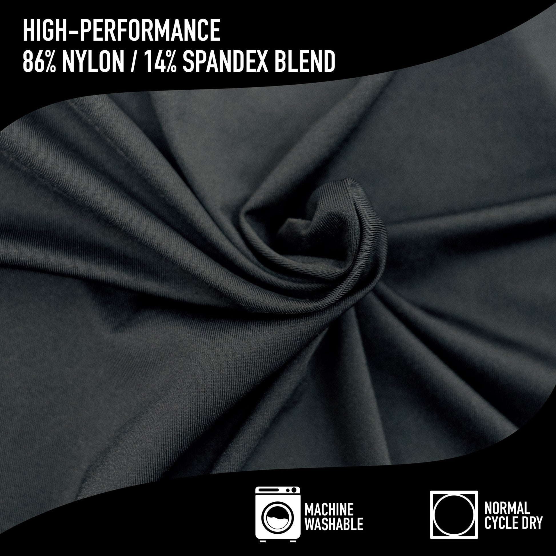 - Made with an 86% nylon / 14% spandex blend that wicks sweat away to keep you cool and dry.