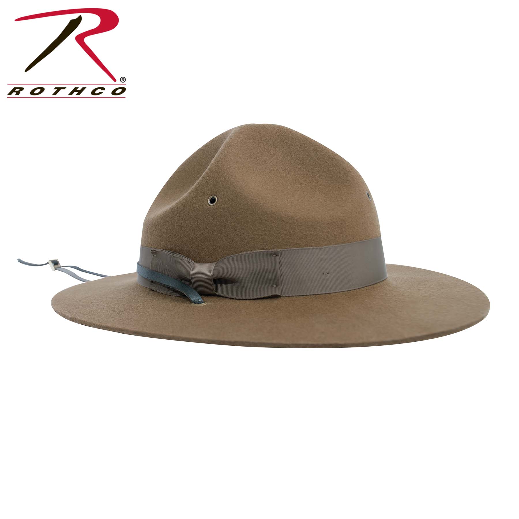 The Military Campaign Hat, aka the drill sergeant hat or round brown hat, is made with a sturdy brown felt material to retain the brimmed hat's iconic look.