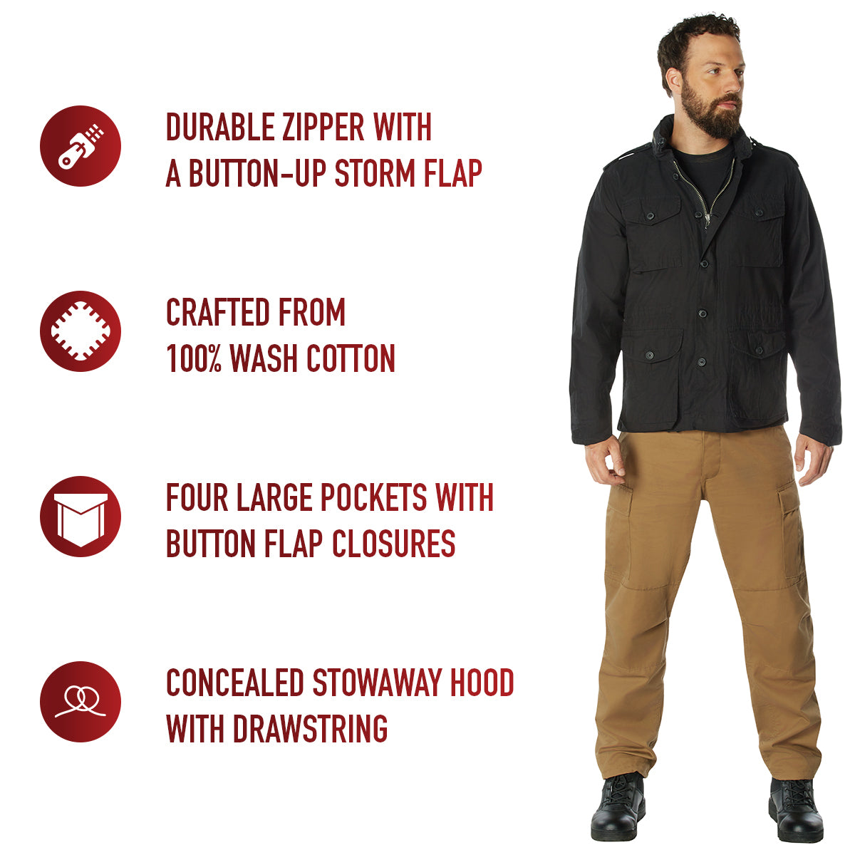 - drawstring in the mid-waist area bottom hem of the field jacket to adjust the fit.