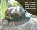 Dominate the sun and great outdoors with our Camo Boonie Hat! These military sun hats are made to government specifications, and provide 360-degree defense from the sun. With a wide, structured brim, these military boonies shade your neck and face, keeping you cool. These military hats are great for playing a few rounds of airsoft, along with hunting, hiking, fishing, and other outdoor activities!